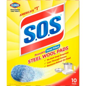 S.O.S Steel Wool Dish Scrubber Pads, 10 Pack