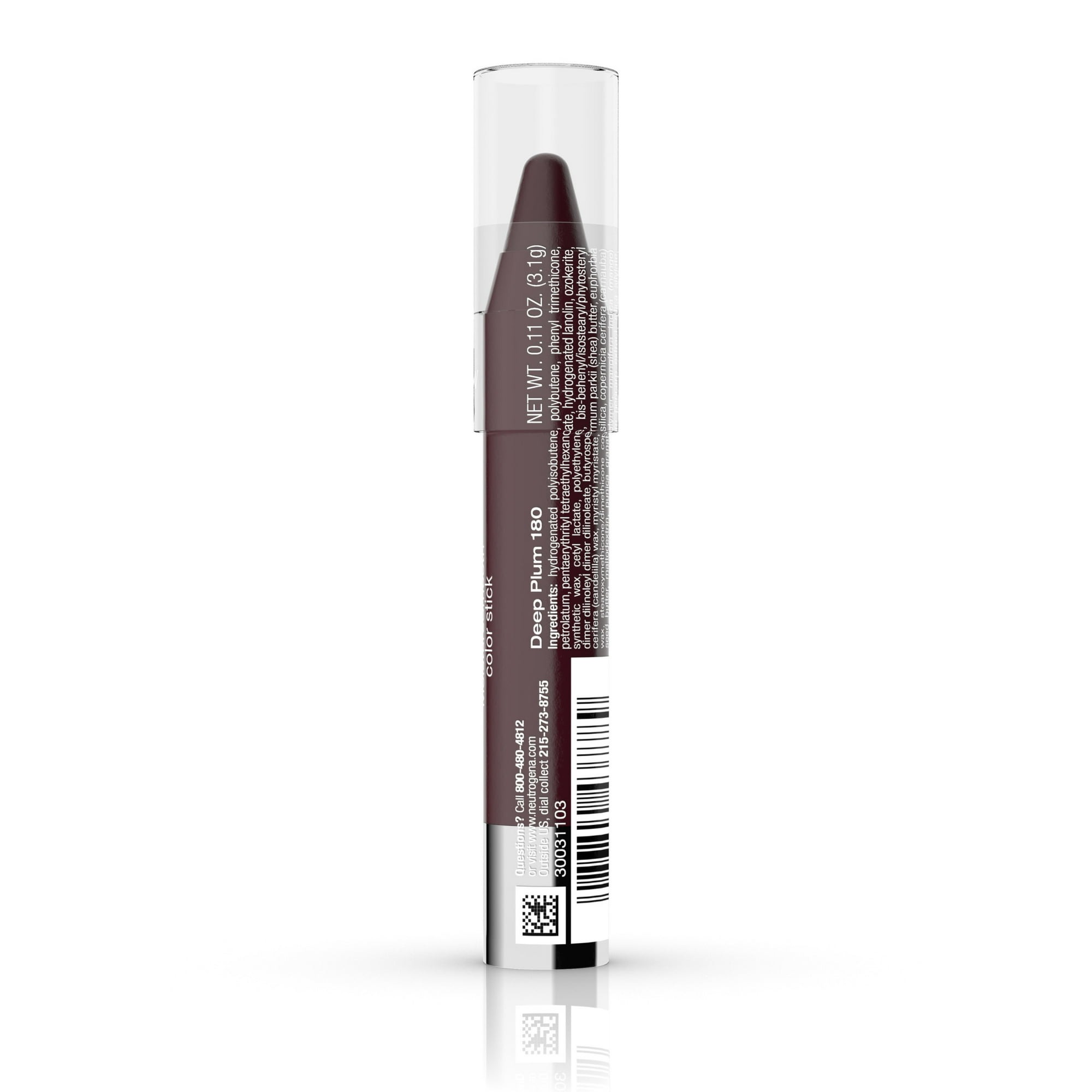 Neutrogena MoistureSmooth Color Stick Lipstick, 180 Deep Plum,.011 oz