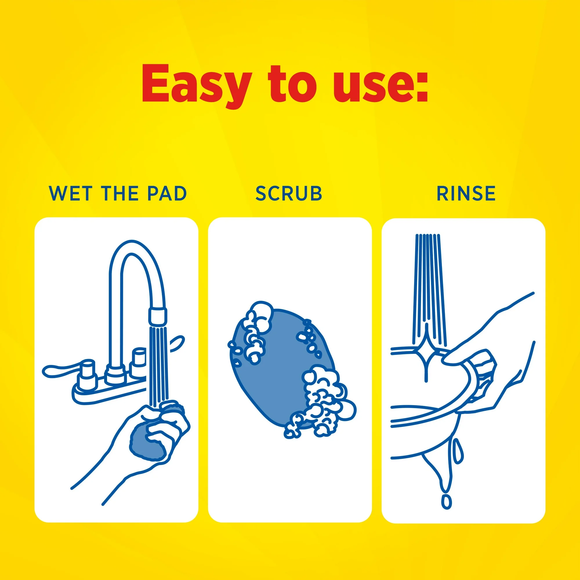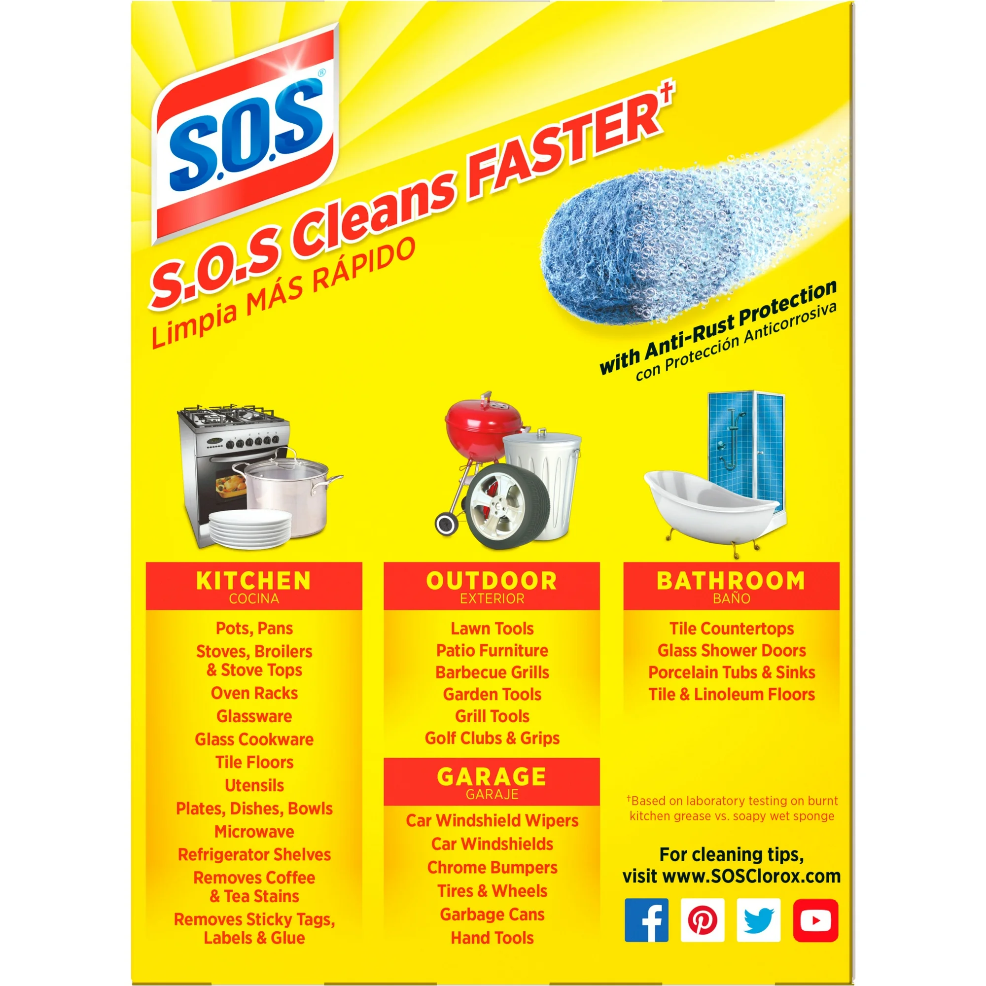 S.O.S Steel Wool Soap Pads are tough so you don’t have to be. Made with durable steel wool and saturated with long-lasting soap, these pads cut through even the toughest baked-on, greasy, grimy messes. They are perfect for cleaning ovens, broilers, cookie sheets and pots and pans. These reusable steel wool soap pads are great outside the kitchen, too. From scrubbing stoves and shower doors to cleaning grills and golf clubs, S.O.S Steel Wool Soap Pads quickly removes stubborn grease, rust and stains inside and outside your home. The soap contains rust inhibitors, preservatives, soaps and detergents, a pH buffer, fragrance and color. Cleaning is quick and easy with S.O.S.- 18 count package of steel wool soap pads