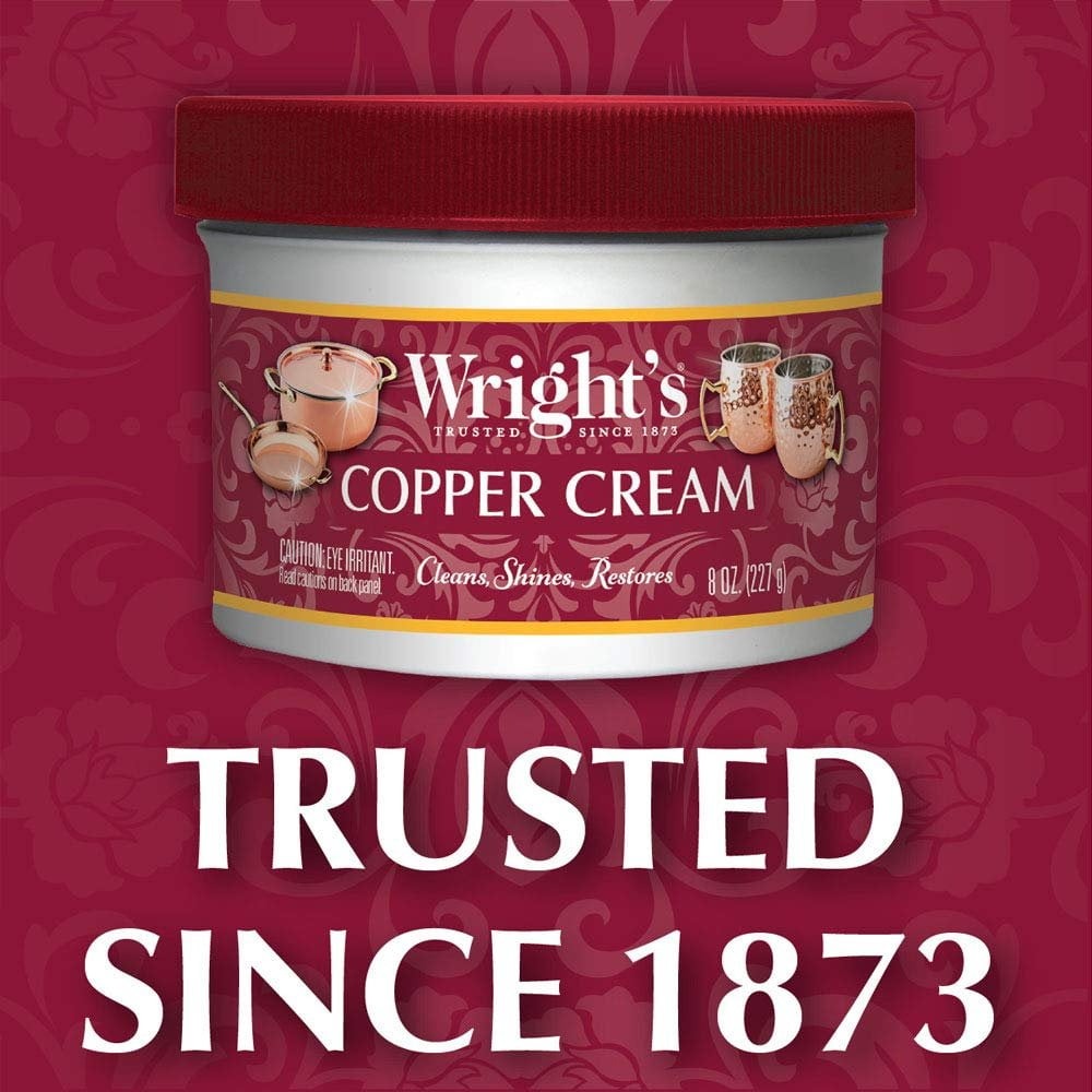 Give your copper the long-lasting shine and protection with the original, gentle, all-purpose Wright’s Copper Cream. Made with only the finest ingredients and engineered with a mild, non-scratch formula that instantly removes tarnish and polishes copper & other metals to restore natural color, luster & shine. Anti-tarnish agents leaves a protective tarnish coating that prevents & delays tarnish from returning and keeps copper shining longer for years to come. Wright’s Copper & Brass Cream Cleaner can easily clean and restore the color and shine of your copper cookware and other fine copper. Fast-acting and odor-free, Wright’s Copper & Brass Polish & Cleaning Cream erases the discoloration caused by high heat or food spills. It’s easy to apply, rinses off completely, and is gentle enough for everyday use. Gently revitalize copper mugs, pots, pans, sinks, hardware, doorknobs & other copper pieces to leave an immense, mirror-like shine. Instantly clean, shine and restore dull, discolored metal with the 3-in-1 all-purpose Wright’s Copper Polish Cream. Wright’s Metal Care is the perfect home, chef, pro, scratch resistant, cleansing, household, professional, and at work solution for all of your copper cleaning and buffing needs. The best specialty cleaning products you will buy online or in a store. When cleaning is your therapy, Wright’s Metal Care is your method, just wipe away and not a fingerprint in site! Wright’s Metal Care wants each of the surfaces in your home to look its best. That’s why we have developed cleaning products that go beyond simply cleaning to beautify and protect each of your delicate, difficult to care for surfaces. From cleaning your cooktop or jewelry to polishing your silver, copper or brass; Wright’s Metal Care makes it easy save time, energy and tiresome buffing. Just polish, rinse & dry to get a brilliant, mirror-like shine, every time! Wright’s Metal Care effortlessly leaves a polishing shine and acts as a protector.
